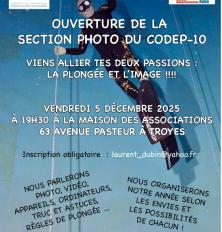 Bienvenue au Suba Troyes ! Depuis 1972, notre club de plongée subaquatique (association loi 1901), fait découvrir les plaisirs de la plongée loisir, grâce à une équipe d'encadrants passionnés. Ouvert aux débutants comme aux expérimentés ainsi qu'aux personnes en situation de handicap, faire votre première plongée, vous entraînez, passer vos niveaux FFESSM (CMAS), devenir encadrant, sortir en fosse, en lac ou en mer, découvrir la photo sous-marine, l'apnée, la chasse sous-marine, la nage avec palmes, les descentes de rivières, la biologie sous-marine... C'est ce que le Suba Troyes vous propose, dans une ambiance chaleureuse et conviviale. N'hésitez pas à parcourir ce site, ni à nous contacter. Vous hésitez ? Nous organisons aussi des baptêmes à la piscine, et c'est gratuit !